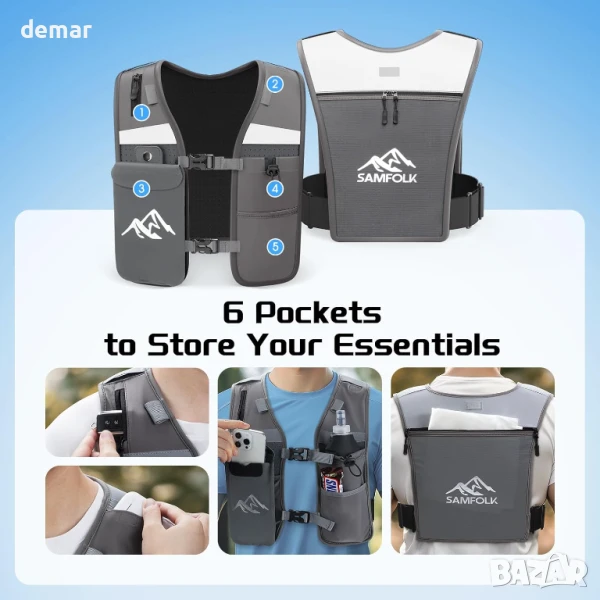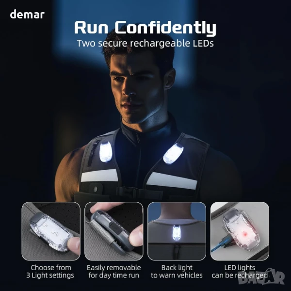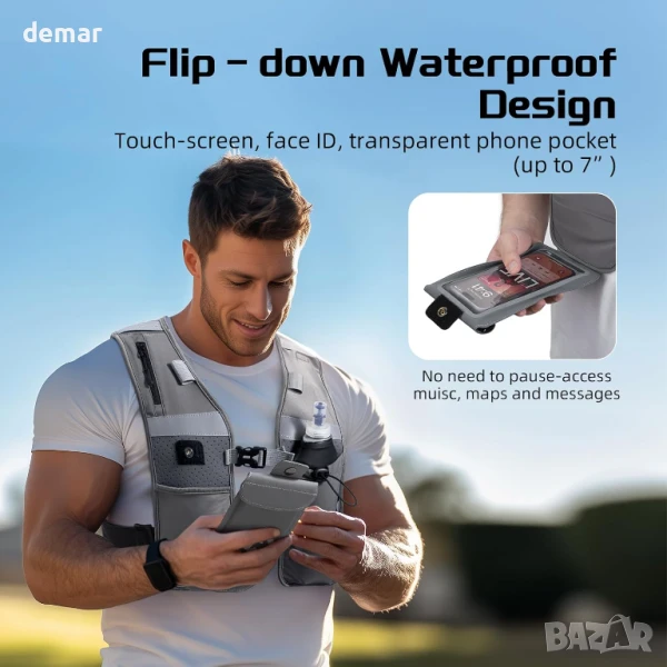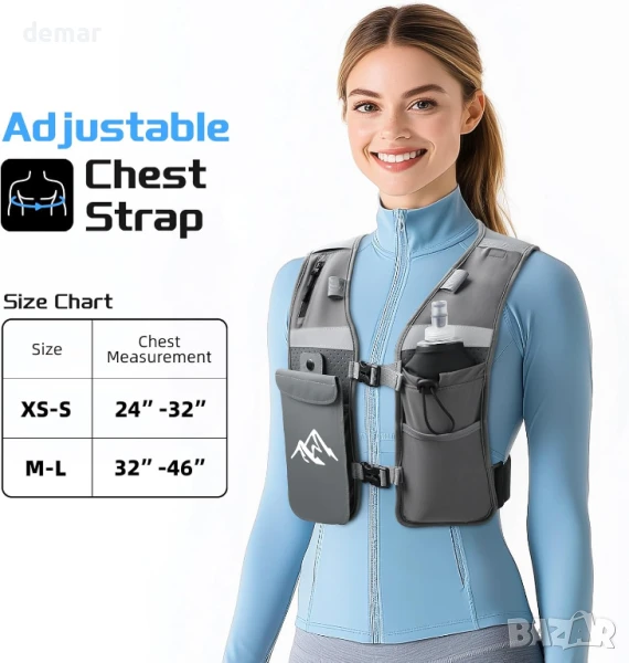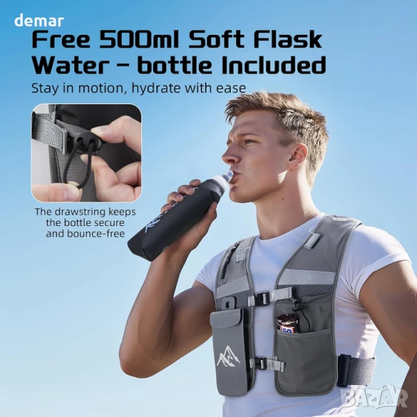 Лека и дишаща, тази регулируема унисекс светлоотразителна жилетка за бягане предлага плътно прилягане с предни и задни точки за регулиране, което я прави подходяща както за мъже, така и за жени. Тя включва вграден държач за телефон и четири отделения за съхранение - едното от които е устойчиво на буря - за безопасно носене на най-необходимите вещи. Включена е мека бутилка от 500 мл, която се побира идеално в определения джоб. Изработена от издръжлив неопрен с отвори за разсейване на топлината, тя осигурява комфорт, бързо съхнене и подобрена видимост при дейности при слаба светлина, служейки като компактна алтернатива на обемистите раници.