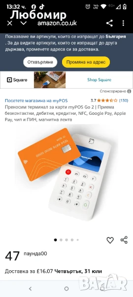 Преносим терминал за карти myPOS Go 2 | Приема безконтактни, дебитни, кредитни, NFC, Google Pay