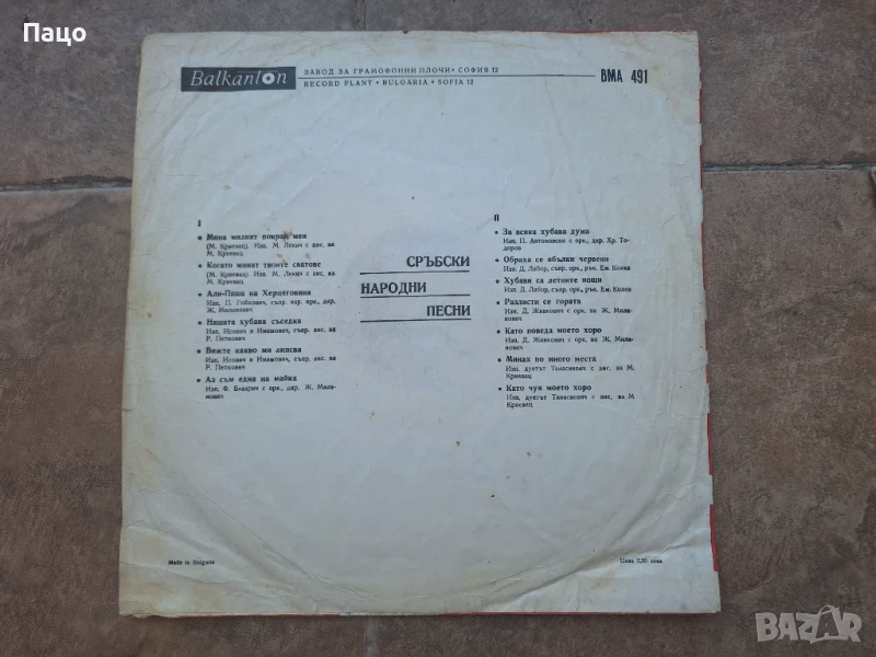 Сръбски народни песни ВМА 491/Цената е такава ,ако се вземат минимум още 3 броя от плочите в обявите ми/