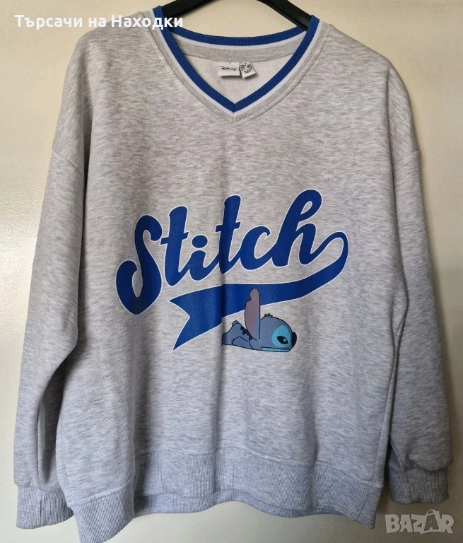 Дамски пуловер с героя Stitch – нов, размер L, сив – Primark