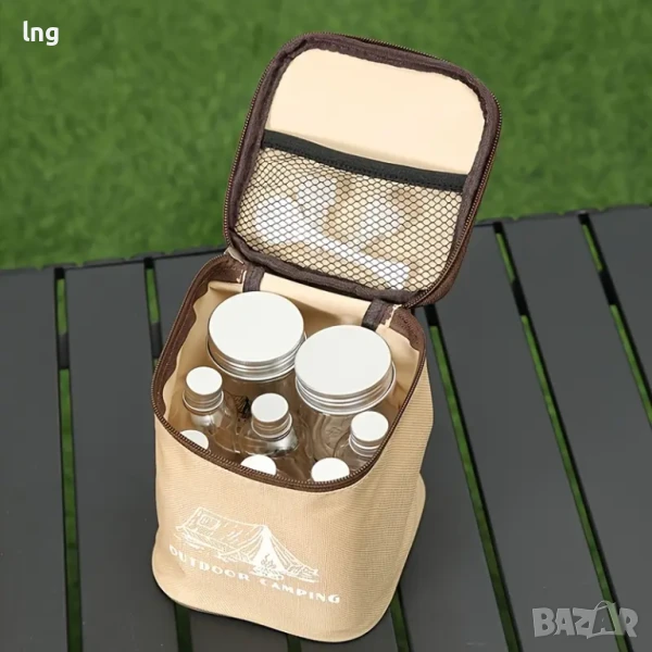 Всичко на едно място: Комплектът е проектиран да събере компактно различни подправки, сосове и дресинги, необходими за вашата храна на открито.