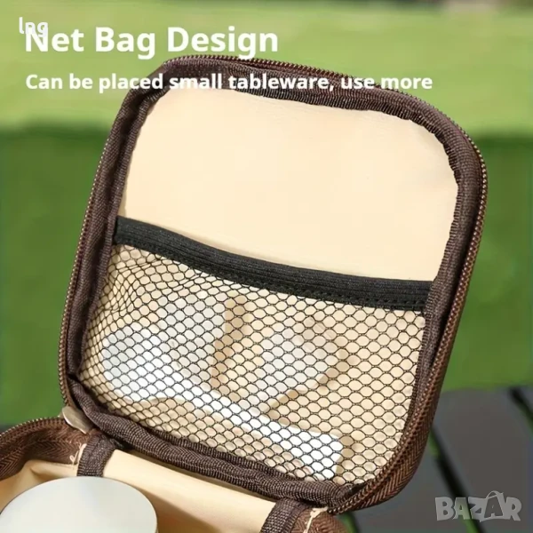 Преносим и компактен: Лесно се пренася и съхранява. Всички компоненти са организирани по начин, който пести място в раницата или кошницата за пикник.