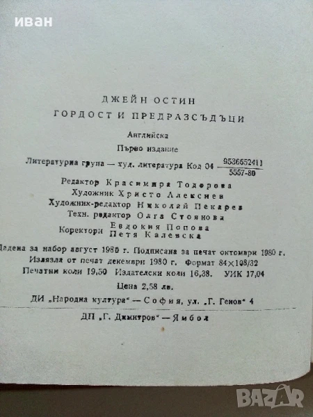 Гордост и предразсъдъци - Джейн Остин - 1980г. → Обява 50927737