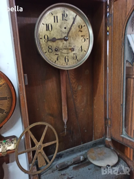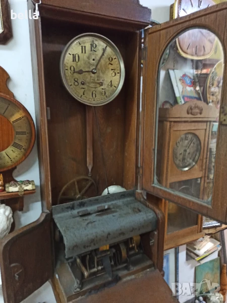 часовник Fried.Ernst Benzing.Датиран от 1911 год.Едно време този тип часовници са се слагали във или пред фабриките и всеки работник при влизане или излизане е поставял карта която отчита кога влиза и излиза.Часовника е много тежък,има и топузи към него,но не работи.Прекрасен антикварен часовник който се нуждае от реставрация или просто за колекция.Часовника има ключ като се навие се чува че работи и спира.Цена 600 лв