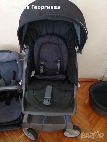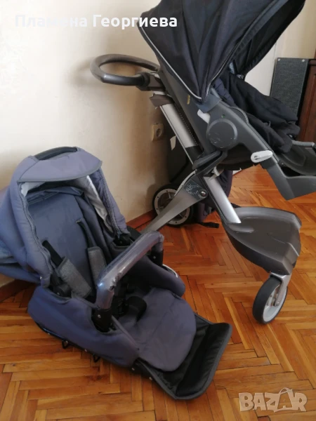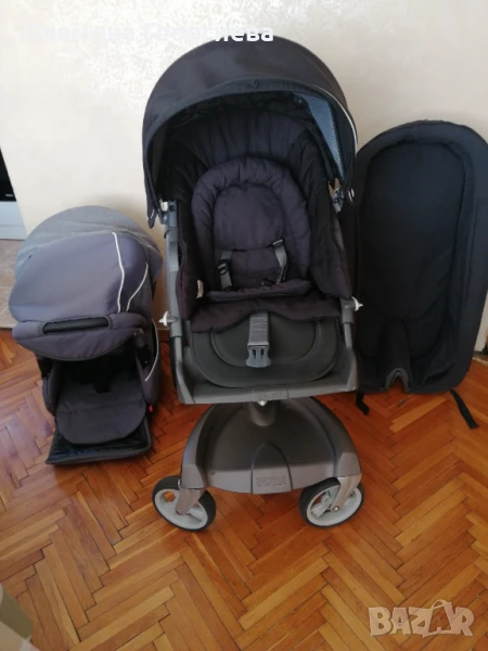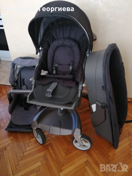 Продаваме комплект детска количка STOKKE XPLORY 3 в 1 в много добро състояние. Няма скъсано по дамаската, леки драскотини по конструкцията - нормални следи от употреба. Всички механизми работят. Цената е за целия комплект, не се продава на части.