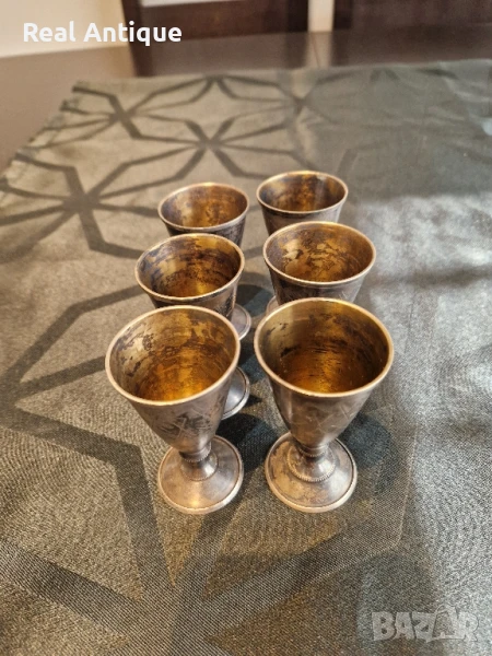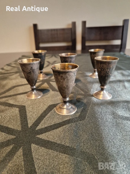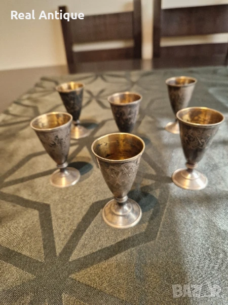 Превъзходен к-т от 6 броя антикварни руски съветски сребърни чашки 875 → Обява 50928232