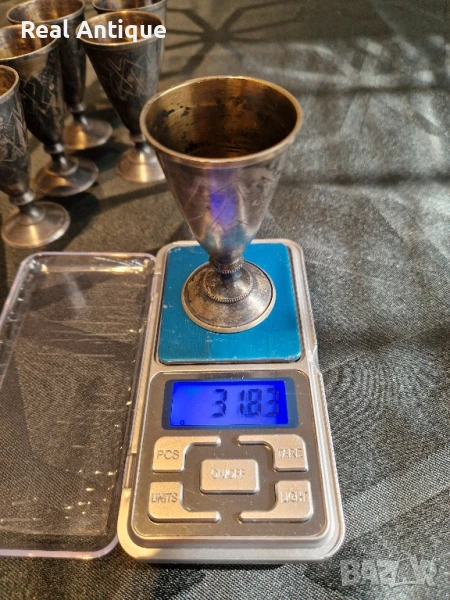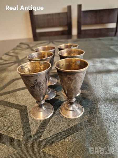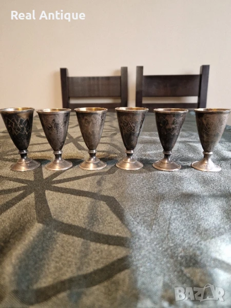 Продавам превъзходен антикварен колекционерски руски съветски сребърен сервиз от 6 чашки в перфектно състояние със страхотна патина. Маркировки звезда сърп и чук и проба 875. Тегло на една чашка 31 грама. Височина 7 см отвор 4 см. Работя с всички куриери. Отговарям бързо.
