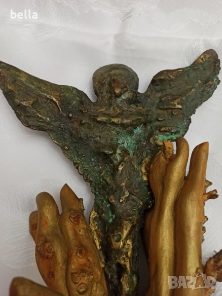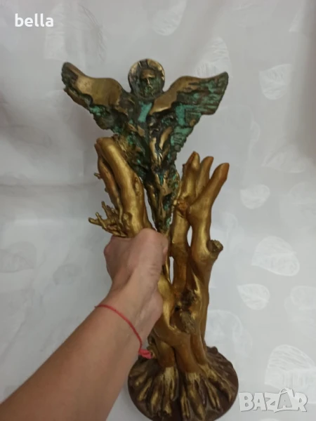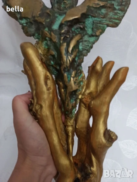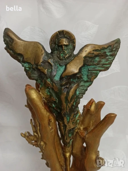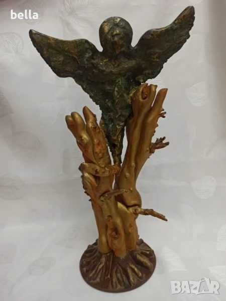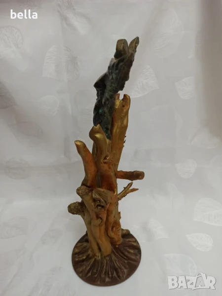 Стара масивна бронзова пластика ,дървен постамент -майсторско изпълнение на самата пластика ,постамента е добавен- дървен направен е от корена на дърво .Няма подпис на автор но е гледана от доста видни художници и склуптори и за тях е майсторско произведение имахме предположение че фигурата е на Ставри Калинов негов стил е но няма подпис и няма как да кажем че е негова ,височината е 40 см.Цена 1500 лв
