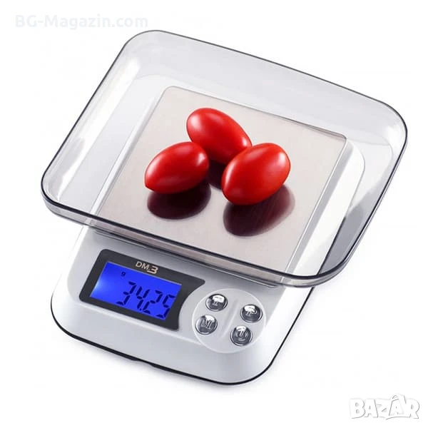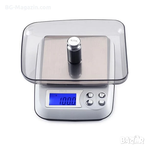 – Прозрачна тава: В комплекта е включена прозрачна тава, която улеснява претеглянето на насипни продукти и предпазва везната от замърсяване.