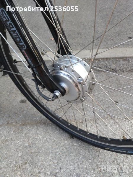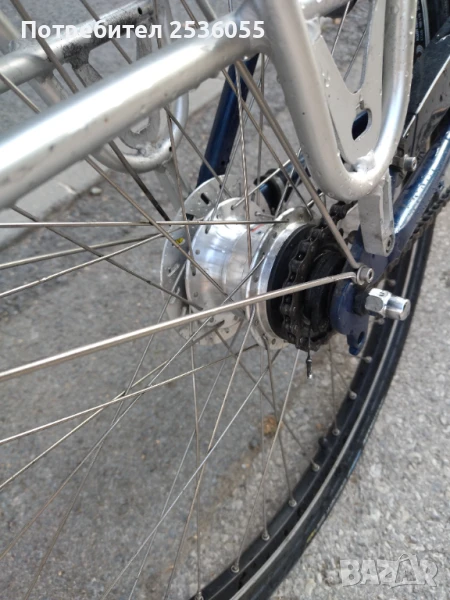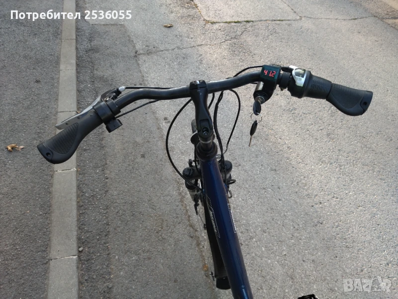 електрически дамски велосипед 26". много ниска рама алуминиева.преден мотор стандартен 250 вата. 36 волта. ,велосипеда е направен да работи като велосипед и като скутер . подаваш ръчна газ на палеца и той върви без да въртиш педалите . всичко работи , в отлично състояние , налично и зарядно . батерия нова направена 42 волта 14 ампера. внос швейцария има ключ за сваляне на батерията и за закл'чващия механизам на задното колело .
