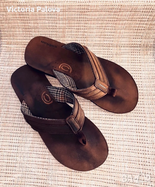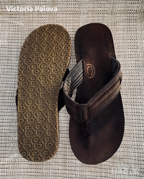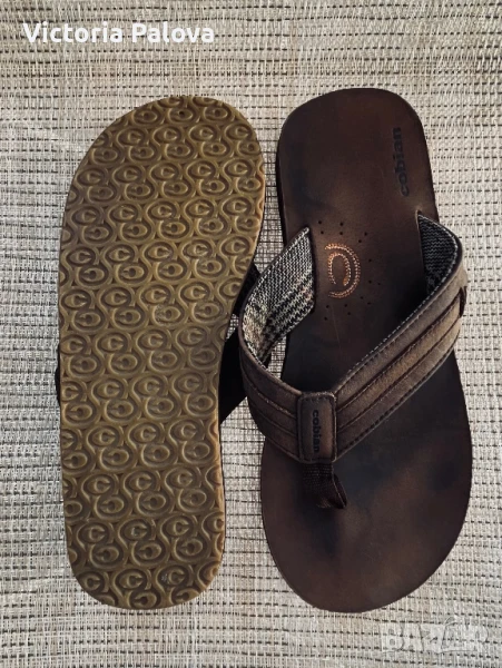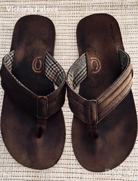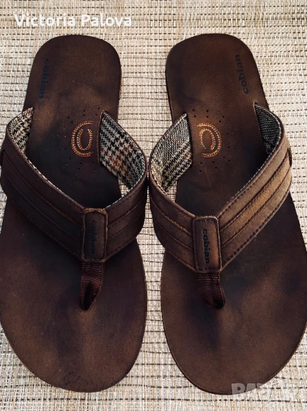 Уникални чехли или джапанки , изработени ръчно от твърда кожа, която не се бои от вода ( изначално компанията COBIAN са правили рибарски обувки от кожа). Марката дава доживотна гаранция на комфорта на всички свои продукти и се смята за водещата в lifestyle индустрията на мъжки сандали.Стелката е 28 см, логото на марката на стелката, на предната част и на подметката.