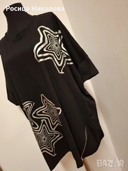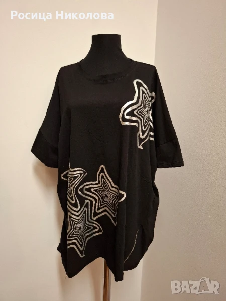 Размери-дълж предница 76см, гръб 82см, гр об 146см и се разпъва до 154см, ханш 150см и се разпъва до 158см. Туниката е тънко трико от памук.