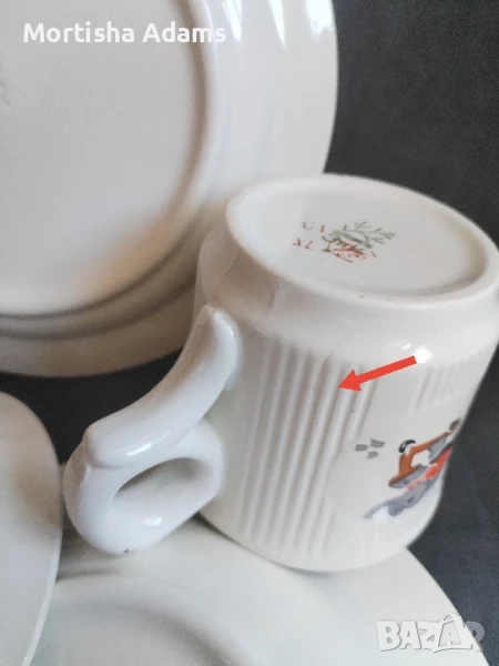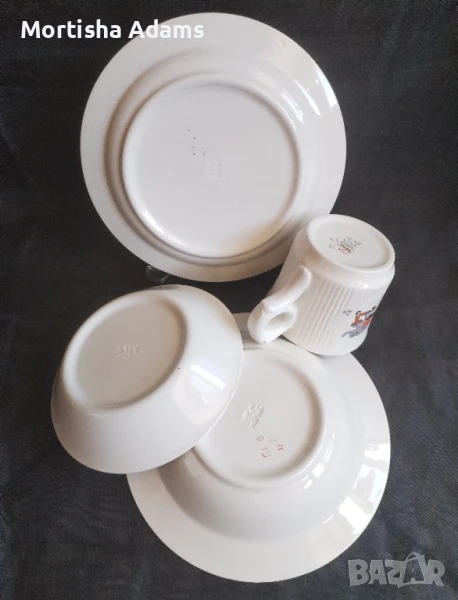 🔸Дълбока чиния- диаметър 18см. 🔸Дълбока чинийка- диаметър 14см., минимални несъвършенства на златния кант. 🔸Чаша- 200мл., с малка пукнатинка, не тече- снимана. Дребни фабрични недостатъци.