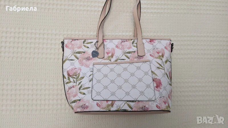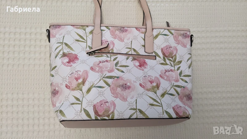 Дамска чанта Catwalk, в бяло-розов цвят с флорални мотиви. Закупена е от