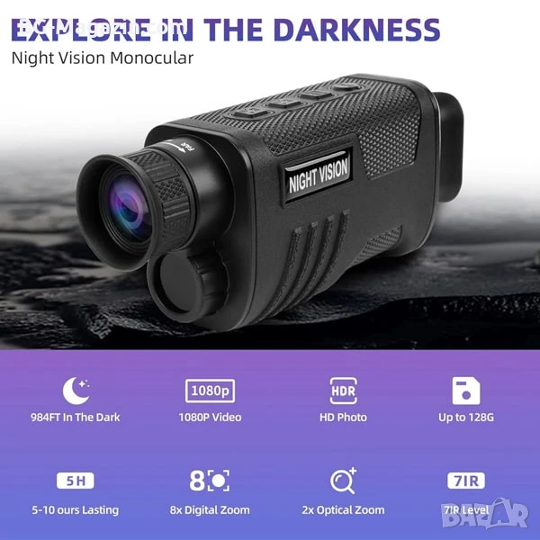 Пренесете вашето нощно наблюдение на следващото ниво с нашия мощен монокъл за нощно виждане. Съчетавайки иновативна технология и удобен дизайн, този монокъл е перфектният избор за ловци, туристи, фотографи и всички, които искат да изследват природата през нощта с безпрецедентна яснота. Благодарение на инфрачервената камера и висококачествения CMOS сензор, ще получавате детайлни изображения дори в най-тъмните условия.