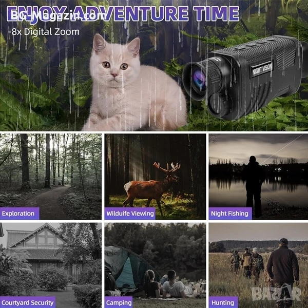 – Наблюдение на дивата природа: Този монокъл за нощно виждане е идеален за наблюдение на животни в природни резервати или в дивата природа.