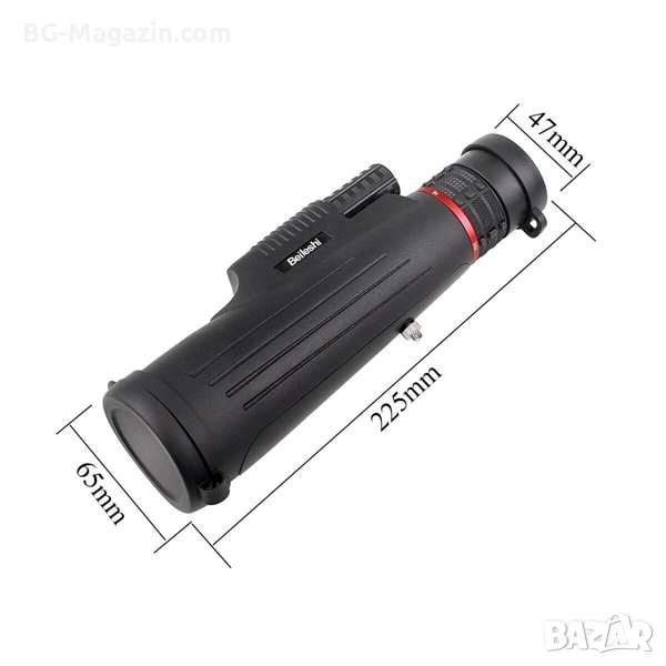 – Възможност за закрепване към статив: Гнездо за статив с резба 1/4″ ви позволява да закрепите монокъла към статив за по-стабилни наблюдения.