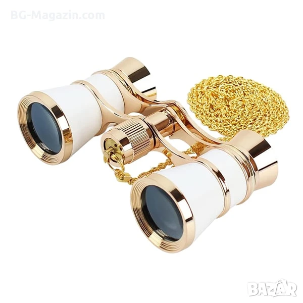 Превърнете всяко представление в незабравимо изживяване с този изящен бинокъл, съчетаващ функционалност и стил. Със своята изтънчена комбинация от бяло и златисто, той е идеалният аксесоар за ценителите на изкуството и културата. Независимо дали сте на опера, театър или просто се наслаждавате на красивите гледки, този елегантен театрален бинокъл ще ви осигури кристално чиста и близка гледка към детайлите, които имат значение.