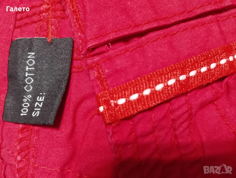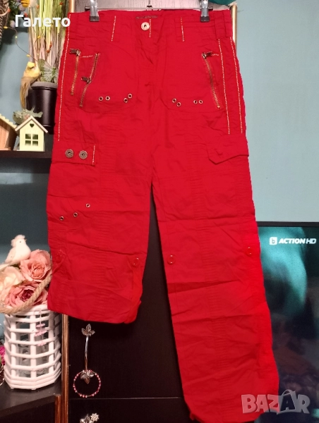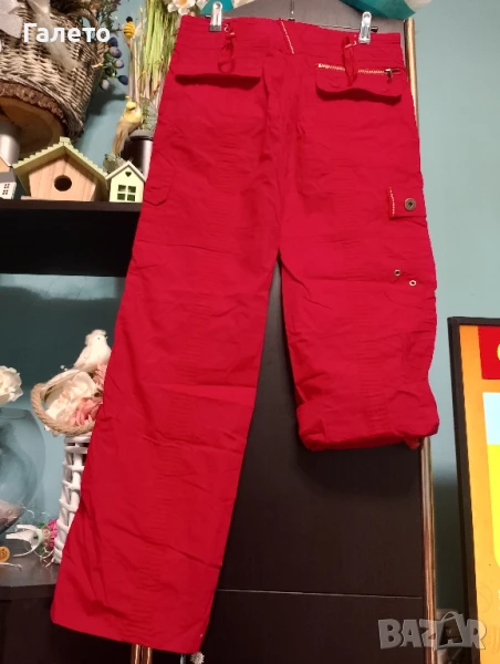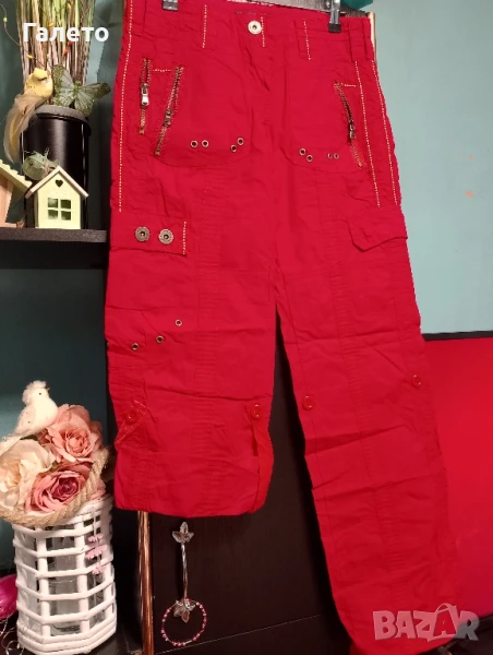 червен панталон 100 %памук с много джобове и крачоли корейхиращи дължината си от 7/8 на бермуди! Размер М Цена 5 лв