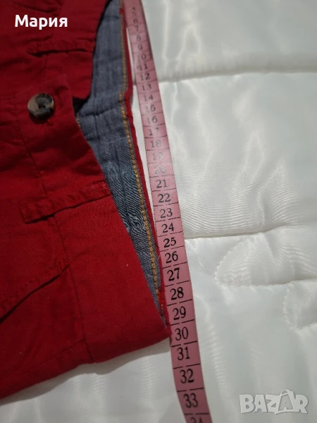 Червен панталон от плат, като нови, ползван за празник веднъж. Имам още такива в обявите, също тъмносиньо кадивено сако, бяла риза, мокасини. При покупка на пакет дрешки ще направя отстъпка.