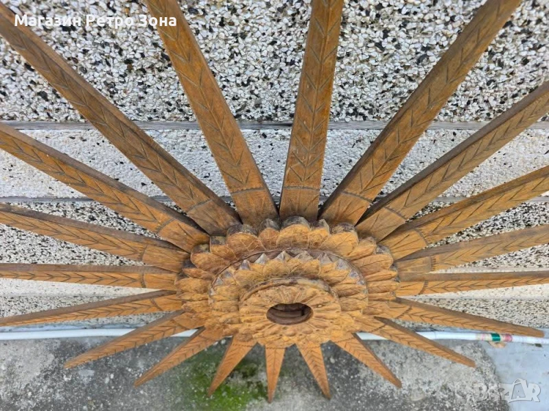 Ръчно изработена розета за таван Слънце-дърворезба.Диаметър 120см.Отлично състояние.Размери в снимките.
