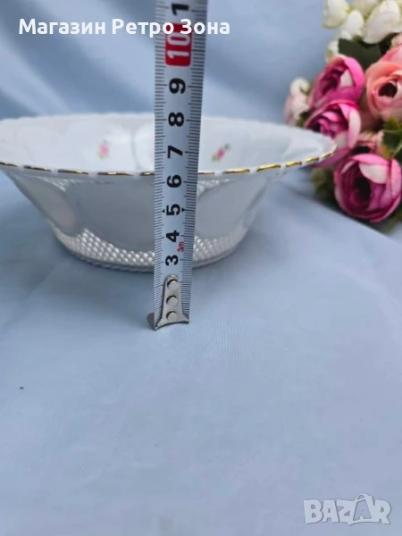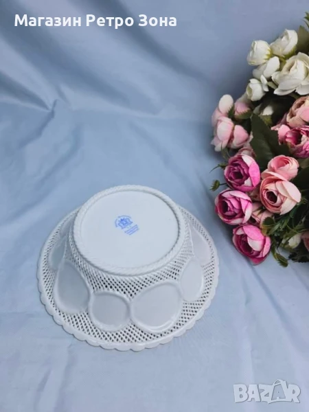 Прелестна ажурна фруктиера,рязан порцелан.Без пукнатини.Размери в снимките.