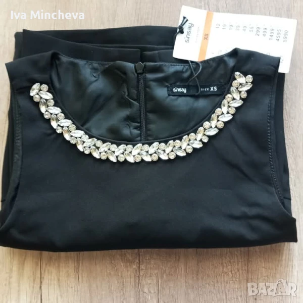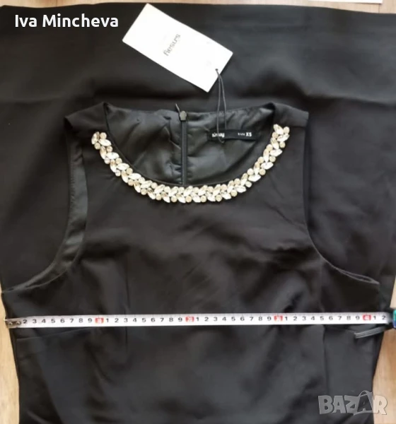 Нова рокля с етикет, Дамска рокля, черна, размер ХS, но е уголемена, s - m, ГО - 86 см, няма еластичност, с цип, декорация камъни, с подплата, нова с етикет. Цена 19.00 лв. Причина за продажба - не отговаря на размера.