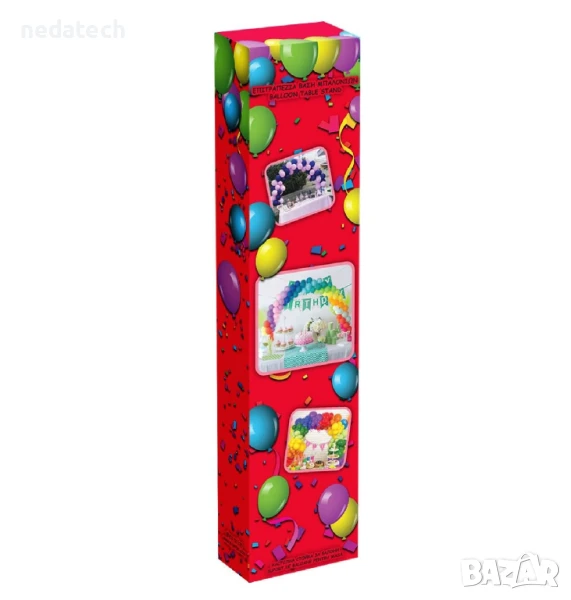 Основа за настолна композиция, която образува 4-метрова арка със скоби, които я закрепват към масата или повърхността, където ще бъде поставена. Съдържа пластмасови пръчки, щипки и конектори, които са лесни за сглобяване. Основата може да побере до 100 балона с диаметър 30 см. Допълнете украсата за вашето парти, събитие или тържество с композиции, които ще направите сами!