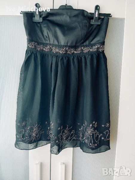 6, Дамски потник - бюстие, сатен и полиестер с прозираща долна част, бродерия, с цип, размер S, черен - 7 лв.
