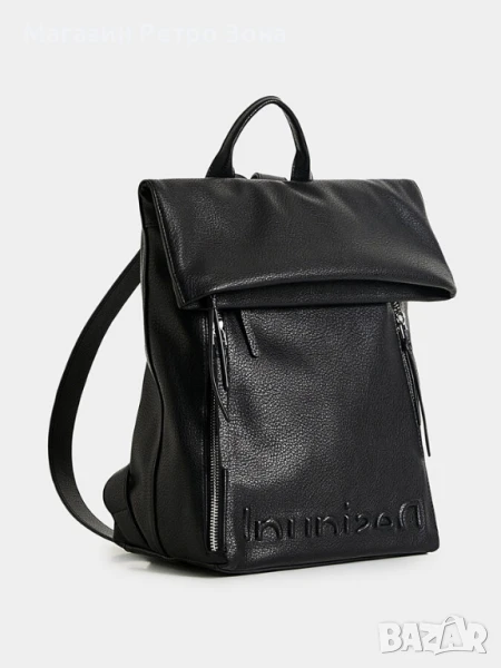 НОВА раница на Desigual. Подарък, който не съм слагала никога С оригиналните си етикети. Цена 100 лева.Атрактивна раница от Desigual, изработена от висококачествена еко кожа. Модел с изчистен дизайн, акцентиран от релефен лого надпис отпред.Къса статична дръжкаРегулируеми презрамкиЗакопчаване с ципЕдно основно отделениеВътрешен плосък джоб с ципДва предни джоба с ципПлосък заден джоб с ципРелефен лого надписРазмери: 31.5 х 25 х 13 смСъстав: 100% полиуретанЦвят: черен