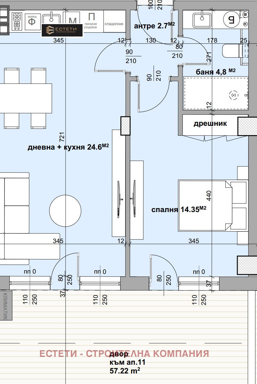 🏠 Двустаен апартамент, състоящ се от: антре, дневна с кухня, спалня , баня с тоалетна, дрешик, двор с площ - 57,22кв.м. Квадратура: - 71 кв.м.