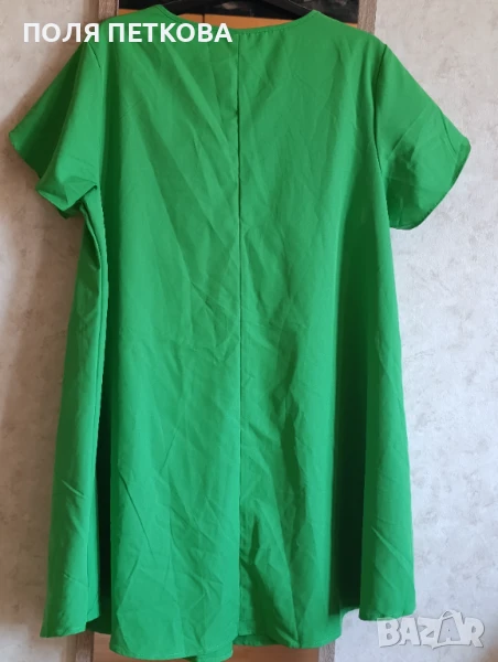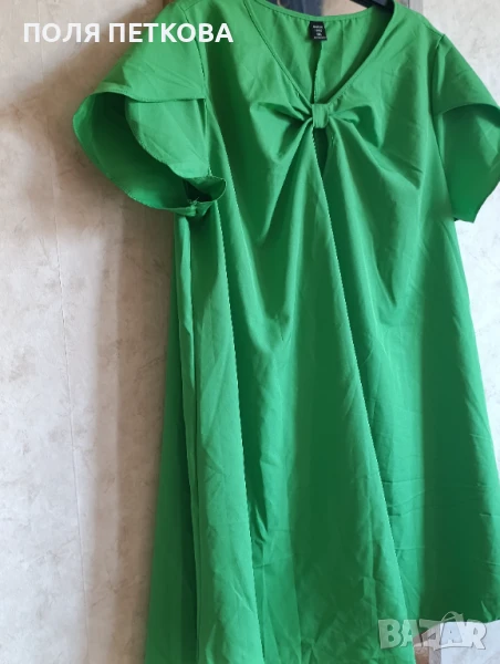 Зелена рокля размер XL изключително лека и удобна материя без еластан модел тип трапец гръдна 120 в ханша надолу се разширява цяла дължина 90 см