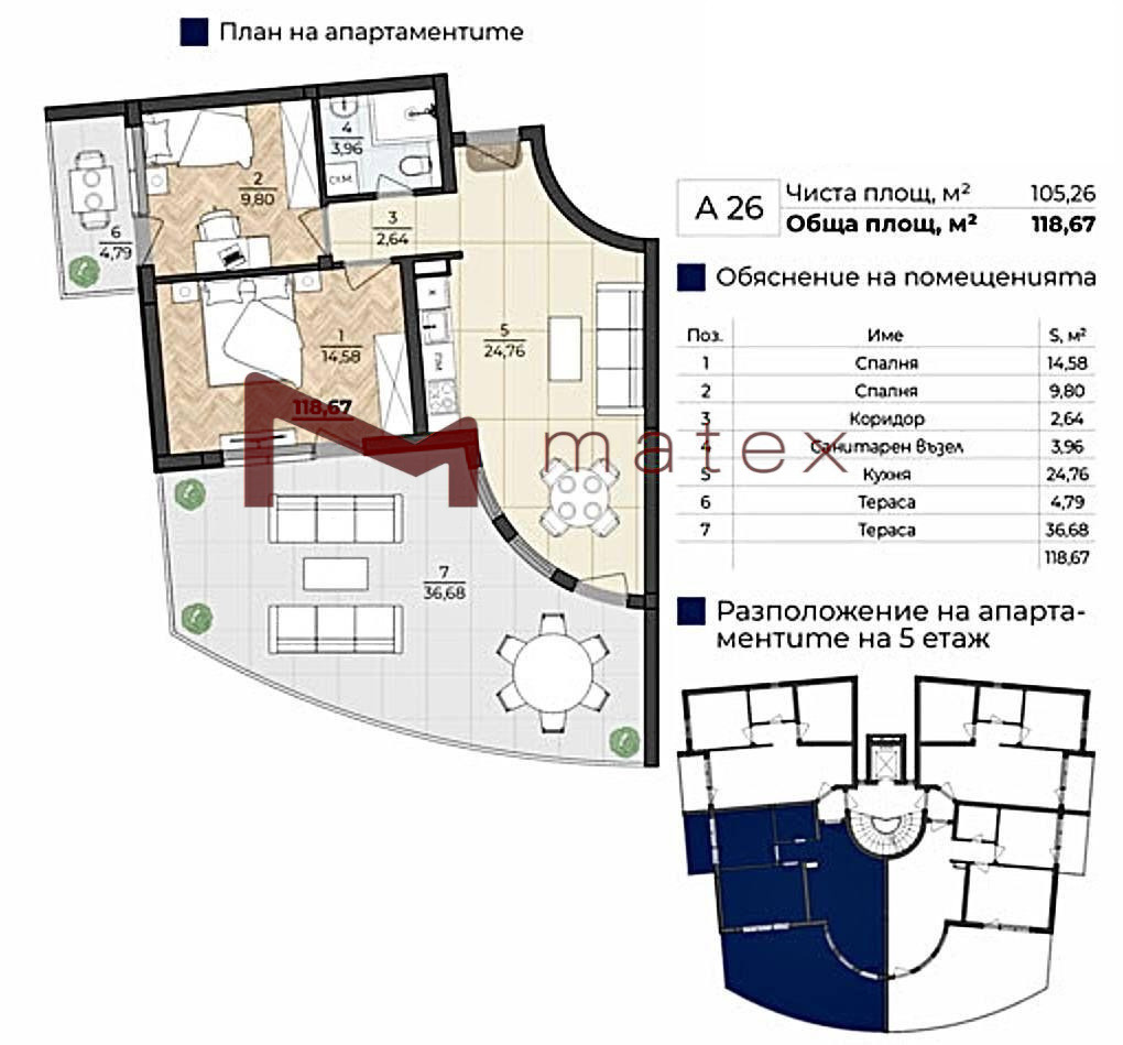 Матекс имоти предлага четиристаен апартамент с площ от 119 кв.м, разположен в новопостроена луксозна сграда на първа линия до морето със собствен достъп до плажа. Жилището включва просторна дневна, самостоятелна голяма кухня, две спални, едната от които с директен излаз към тераса, баня с тоалетна и входно антре. Разпределението е функционално, помещенията са светли и просторни, с усещане за комфорт и простор. Сградата е с висок клас строителство, поддържани общи части и контрол на достъпа. Имотът е отличен избор както за целогодишно живеене, така и за ваканционно ползване или инвестиция. За контакт: 0878615408 Траян Кателиев VN4887