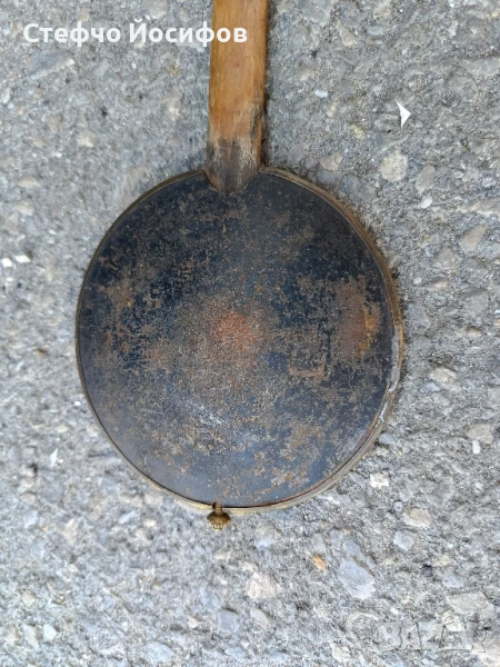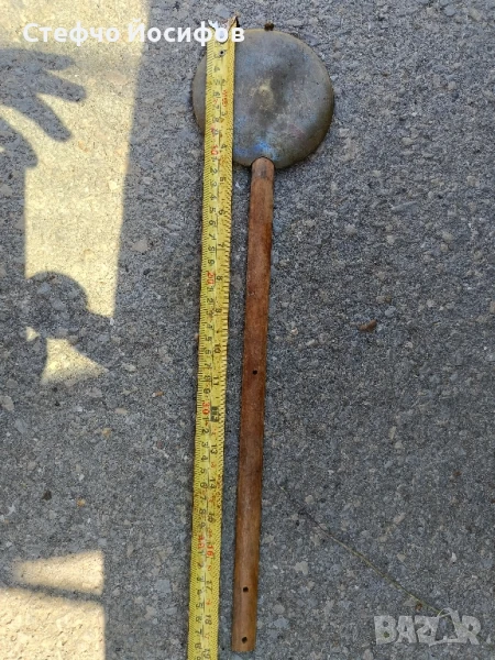Състоянието е видно, здраво запазено със забележки, видно на снимките. Вдлъбнато е от едната страна.Размер 49,5 дължина. Диска е 11,5см.
