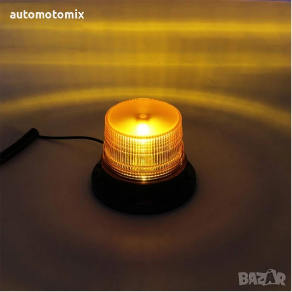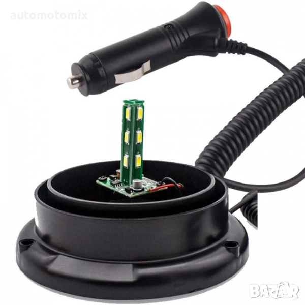 СИГНАЛНА ЛАМПА,ЖЪЛТА,ДИОДНА 12V/24V - 2476 Сигнална диодна лампа с 12диода,Оранжева блиц светлина с магнит - 2476 Мощни 12диода. Работно напрежение:12 -24 волта. Цвят на светлината:Оранжев (AMBER) Захранване на лампата от запалката на превозното средство. Разтеглив спираловиден кабел с накрайник за запалка с бутон. Монтаж с магнит. Материал на маяка:PVC Височина:95мм Диаметър:129мм. Дължина на кабела:2метра.