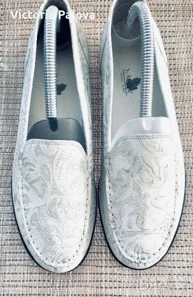 Немска марка, изработваща висококачествени обувки, технологията на стелката е подходяща за хора с артрит, с болки в предната част на стъпалото и на петата. Елегантността среща комфорта в този сребрист мокасин, който ще поглези краката ви и ще спечели сърцето ви. Вечен дизайн с несравнима майсторска изработка, която се усеща във всеки шев. Благодарение на липсата на закопчаване, можете да се насладите на неограничена свобода на движение, без да правите компромис със стила и функционалността. Стелка - 26,1-2см.