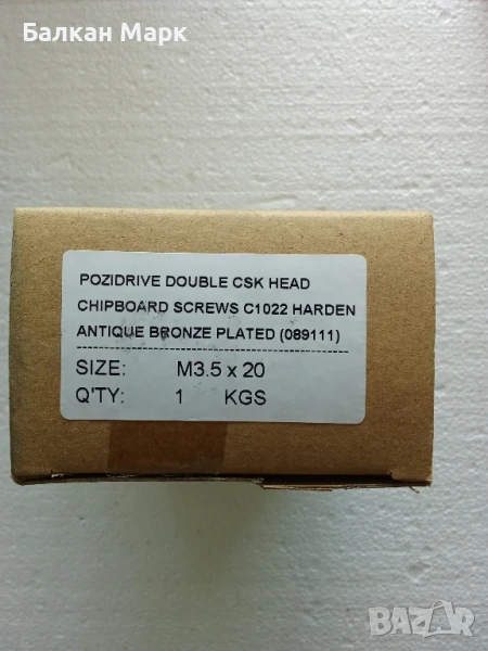 Продавам винтове за дърво с размери 3.5x20 мм, бронзирани – освен защита от корозия, покритието придава ефект на състарен, ретро стил (античен вид).