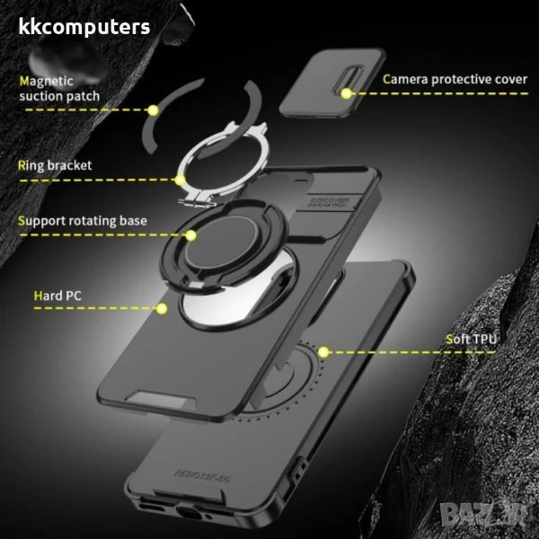 OPPO Reno13 F 4G / 5G Sliding Camshield Удароустойчив Ring Holder Калъф и Протектор