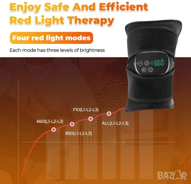 Безжичен LED Инфрачервен Масажор Червена Светлина Дълбоко Облекчаване Тяло Гръб Колене Стави Мускули