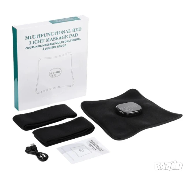 Многофункционална масажна подложка с червена светлина с цифров дисплей контролер. LED вибрационен масаж с червена светлина облекчава болката, отпуска тялото и облекчава умората. Зареждане през USB.