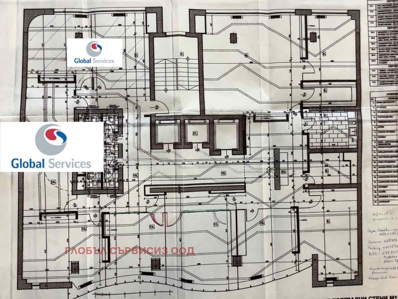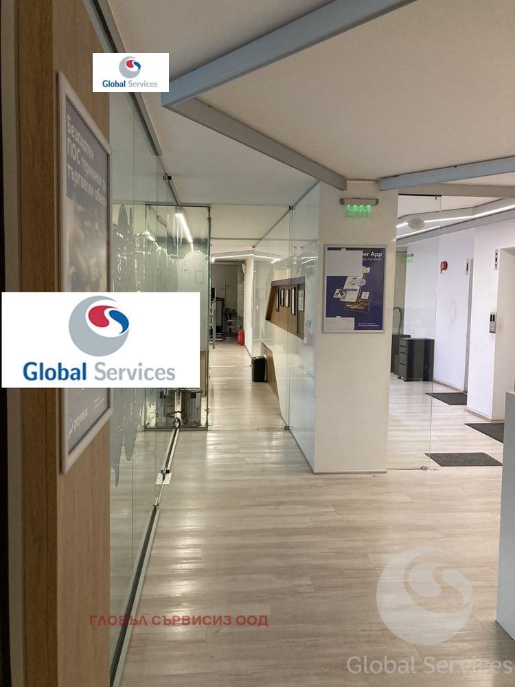 Open Space със разпределение на 9 работни помещения за 35-40 човека със стъклени преградни стени и вградени поръчкови офис мебели. Предверие, Рецепция, две обединяващи се заседателни зали, оборудвана кухня, 4 тоалетни, архив, сървърно и сервизно помещение.