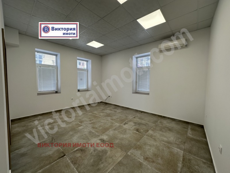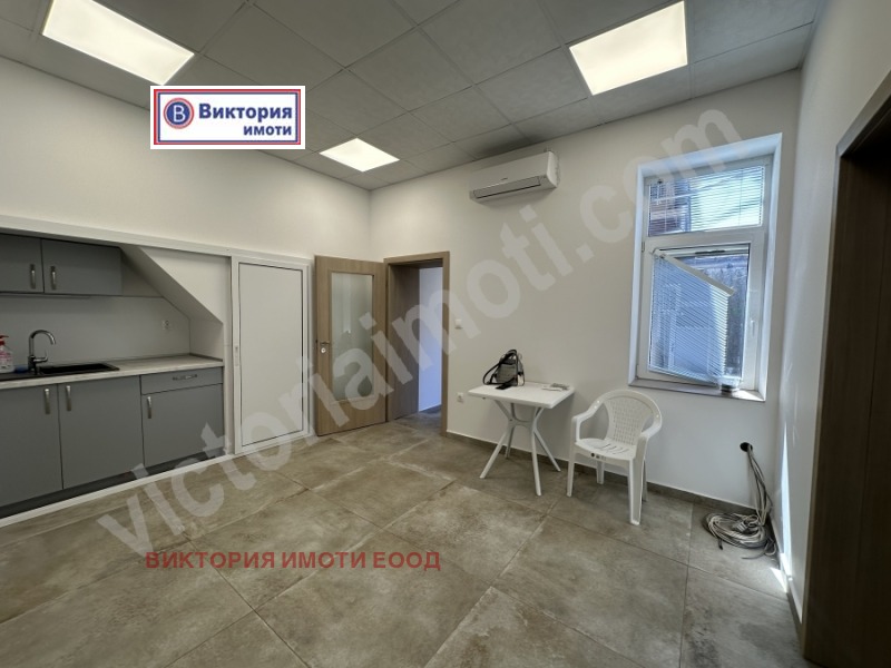 Екипът на Виктория имоти предлага на Вашето внимание отремонтиран офис под наем в ТОП центъра на град Велико Търново. Мястото е тихо и спокойно, но същевременно разположено в сърцето на старата столица. Площта му е разпределена между входно антре, стая с кухненски бокс, която е подходяща за отдих или приемна, три офиса и санитарен възел. Имотът е изцяло ремонтиран, като във всяко от помещенията е монтиран инверторен климатик. Помещението е удобно за учебен център, счетоводна или адвокатска кантора, козметичен салон или друго. Заповядайте на оглед!