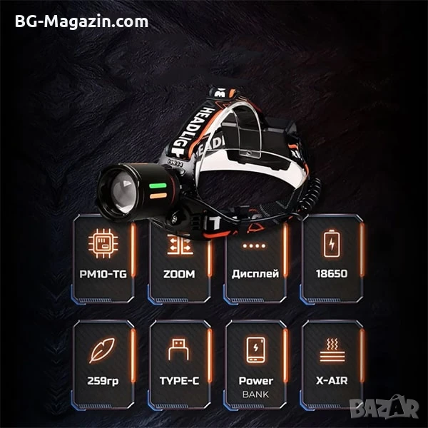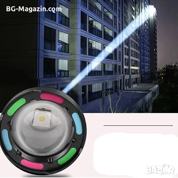 Допълнителни функции: Магнитна основа, регулируема фокусировка (Zoom), задна червена светлина