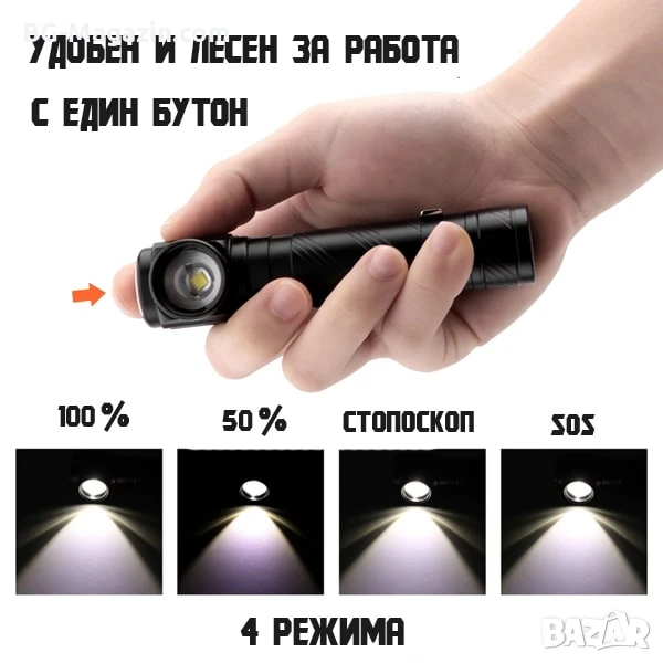 – Регулируем фокус: Персонализирайте светлинния лъч според ситуацията.