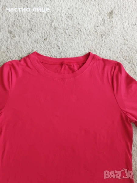 Нова тениска с дълъг ръкав, цветът е наситено червен.