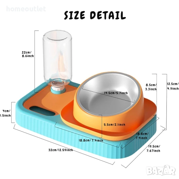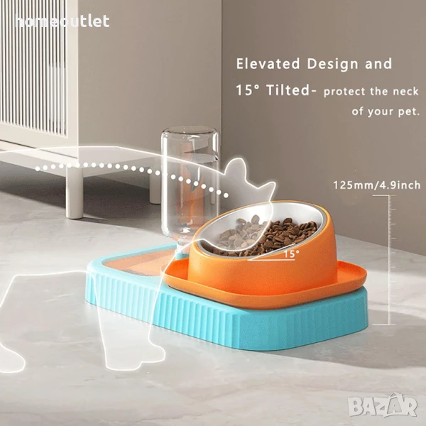 Перфектната комбинация от купа против разливане, бавна хранилка и автоматичен диспенсър за вода, улеснява вашите домашни любимци да се наслаждават на прясна вода и чиста храна едновременно.
