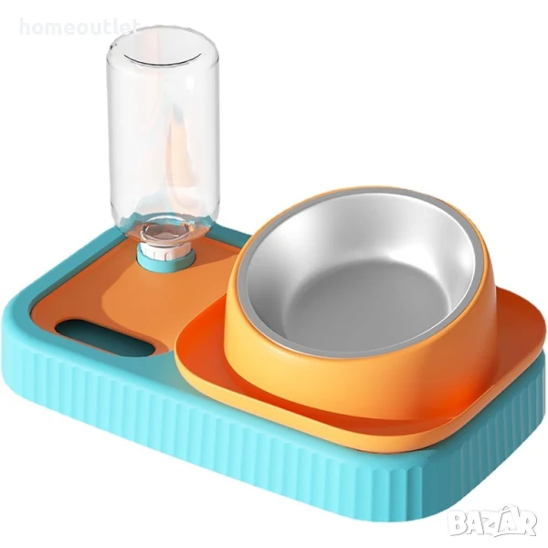 Комплектът включва купа за храна против разливане, бавна хранилка и автоматичен дозатор за вода.