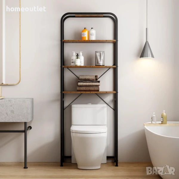 С 4 нива, този рафт за съхранение използва вертикално вече заетото пространство, за да предложи допълнително място за организиране на тоалетни принадлежности или показване на декорации.