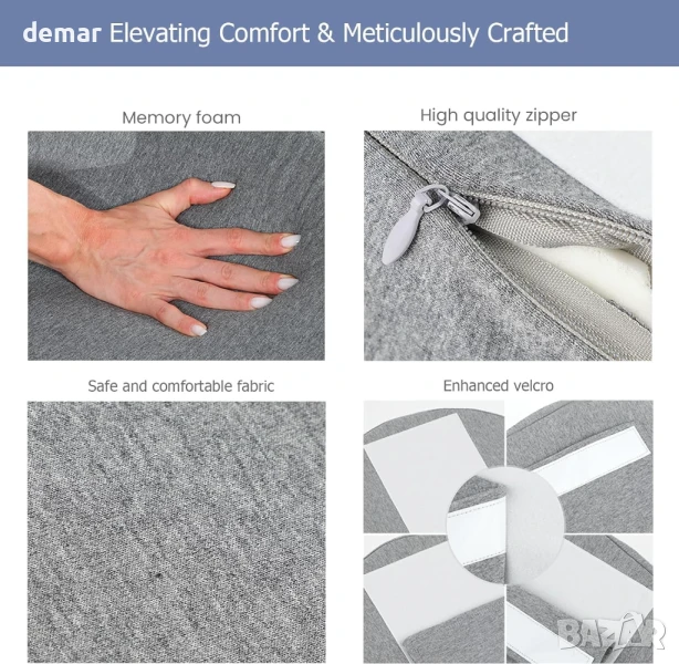 Възглавница за бременни от мемори пяна, регулируема за тяло, свалящ се калъф, сива