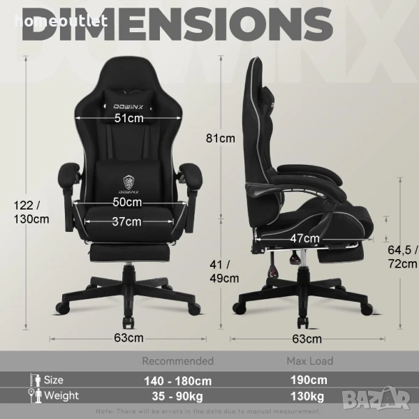 Този геймърски стол има функция за накланяне на облегалката от 90° до 135°.